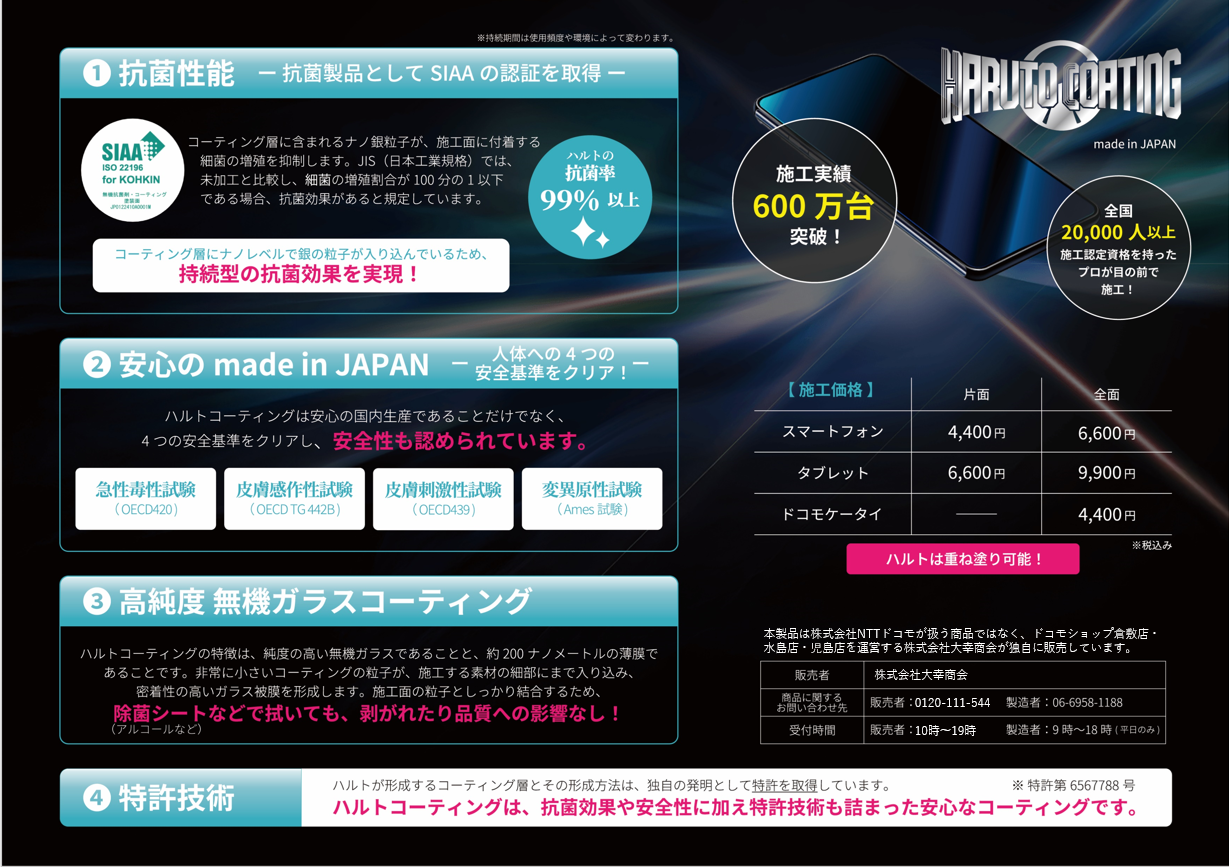 ハルトコーティング(ガラスコーティング)のご紹介 〜 ドコモ以外の方も施工承ります!倉敷等の岡山県南エリアの方は当店へ〜